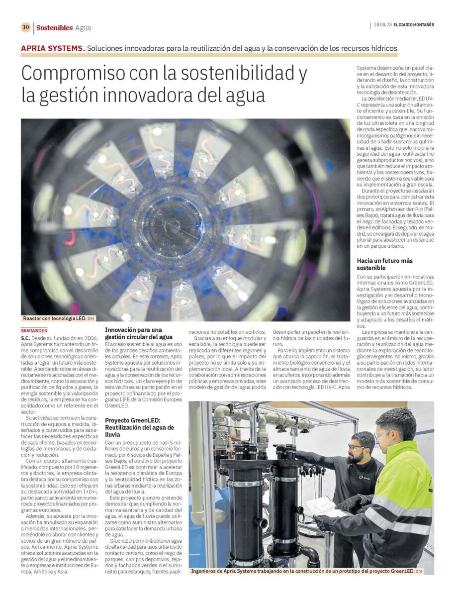 25 de March de 2025 25 de March de 2025Special supplement for World Water DayApria and the GreenLED project featured in the special supplement for World Water Day in El Diario Montañés
