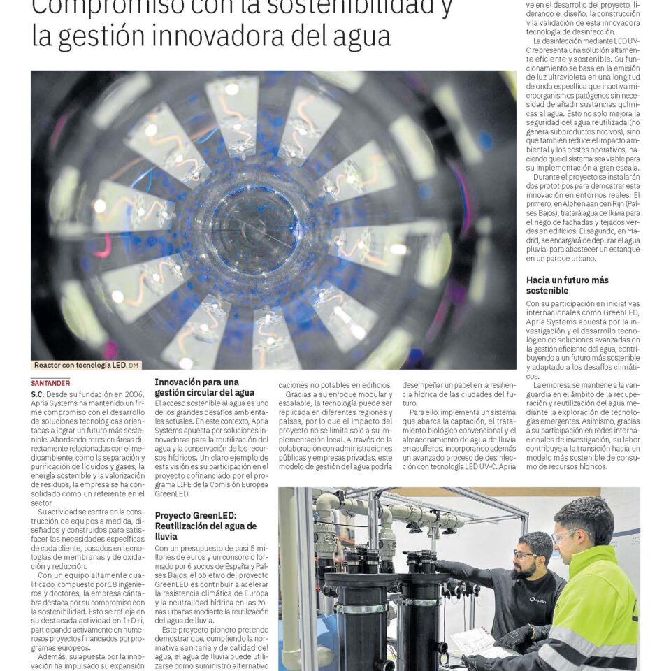 25 de March de 2025 25 de March de 2025World Water Day SpecialApria and the GreenLED project featured in El Diario Montañés' World Water Day special edition